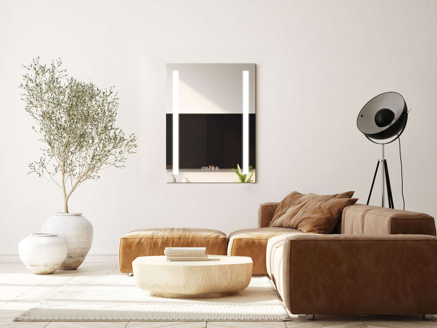 Einige der neuesten LED-Spiegel bieten sogar Funktionen wie Digitaluhren und Berührungssensoren. Manche zeigen auch die Temperatur in Echtzeit an und erleichtern Ihnen so Ihre Morgenroutine. Sehen Sie sich zum Beispiel den maßgefertigten LED-Spiegel Lyra Arched von c an.