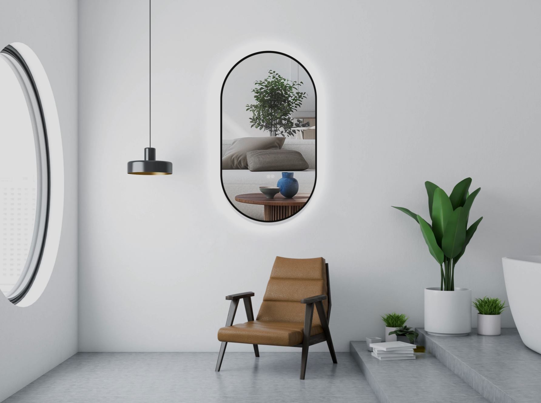 Antibeschlag-Design: Verabschieden Sie sich von beschlagenen Spiegeln nach einer heißen Dusche. Unsere ovalen Spiegel mit Antibeschlag Funktion sorgen jederzeit für ein klares Spiegelbild und sind somit die ideale Wahl für Badezimmer.