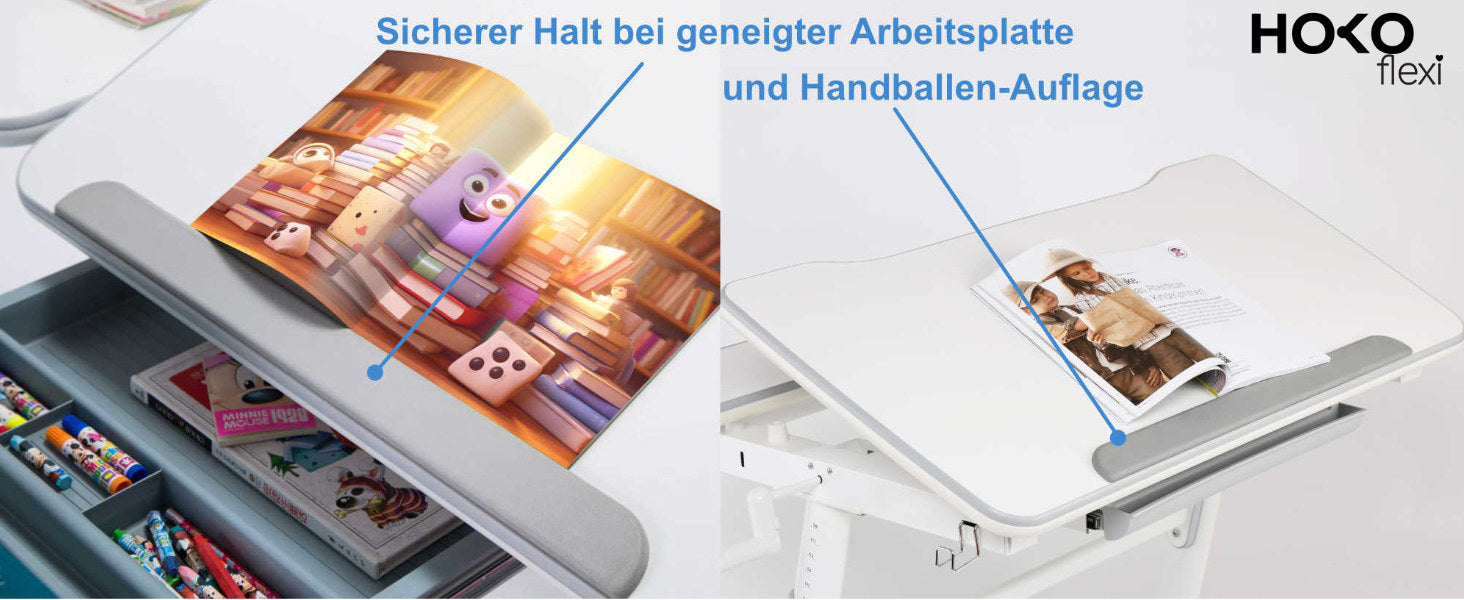 LANA - Ergo rutschfeste Handballenauflage mit Buchstopper für Kinderschreibtisch, Grau