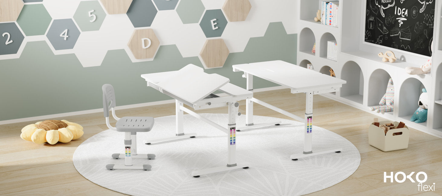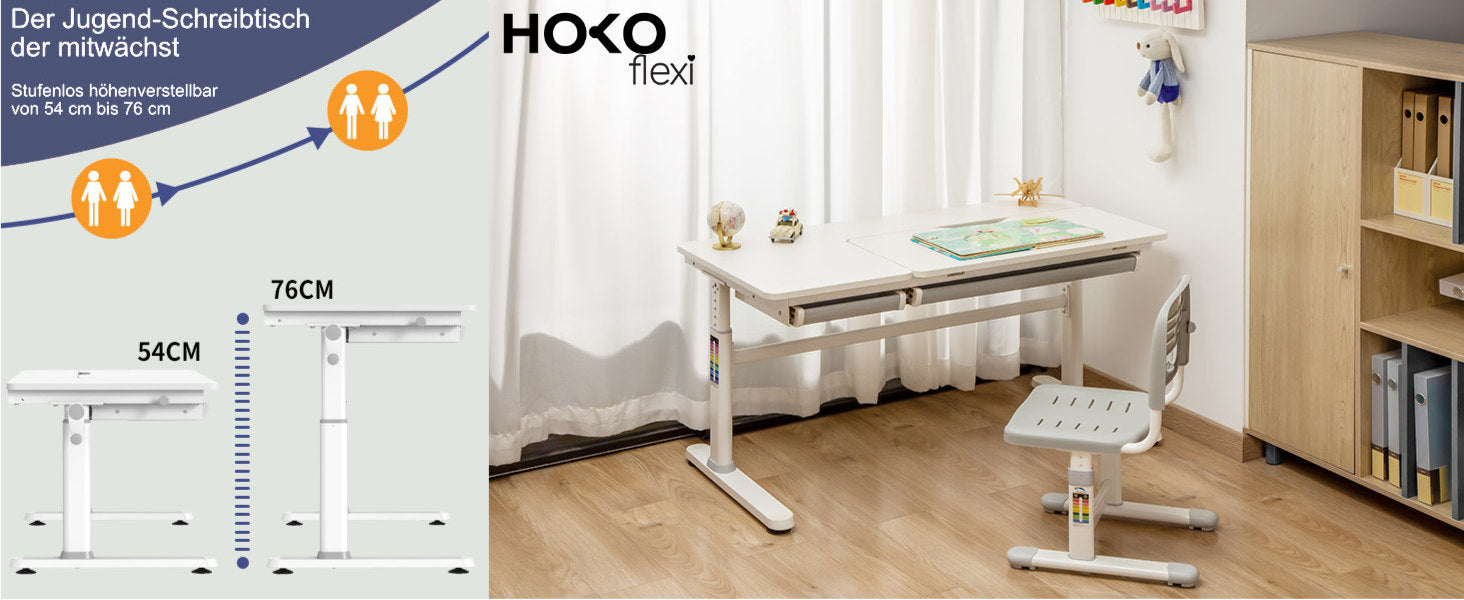 The manually height-adjustable children / youth desk HOKO ERGO-STUDY-TABLE COMPACT PLUS ensures ergonomically correct posture while learning, crafting, reading and playing at the desk. The hand crank ensures smooth and easy height adjustment.