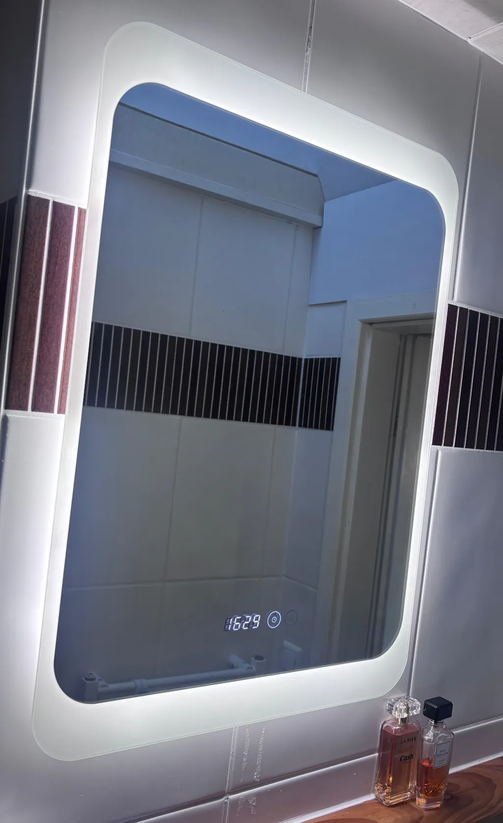 - Digital clock integrated in the mirror surface