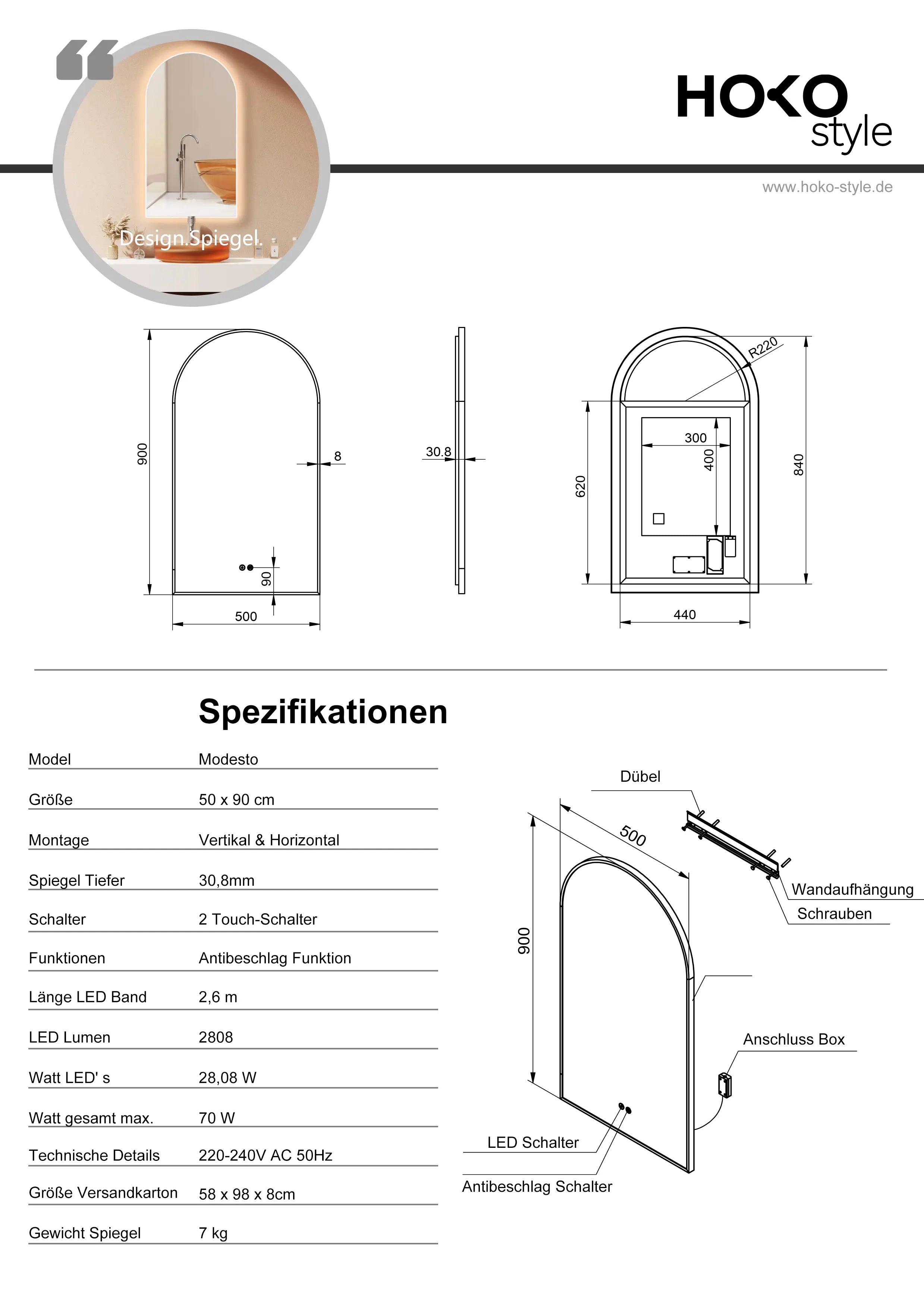 Premium-Verpackung und einfache Montage. Inkl. Montageanleitung und Zubehör zur Montage an Massiv-Wänden. Geeignet für Feuchträume wie Badezimmer (IP44). Geringer Stromverbrauch, SGS-geprüft für Ihre Sicherheit.