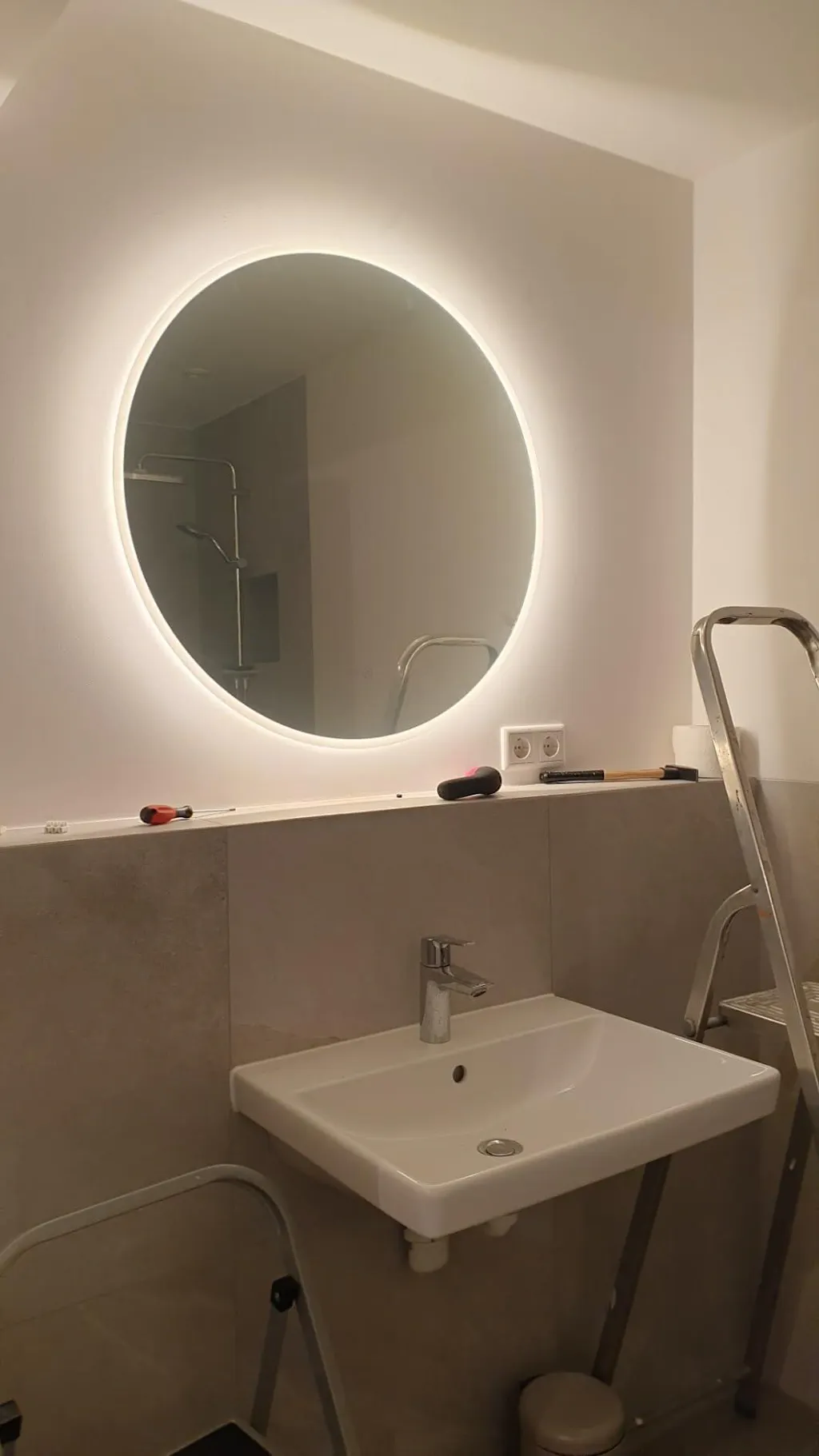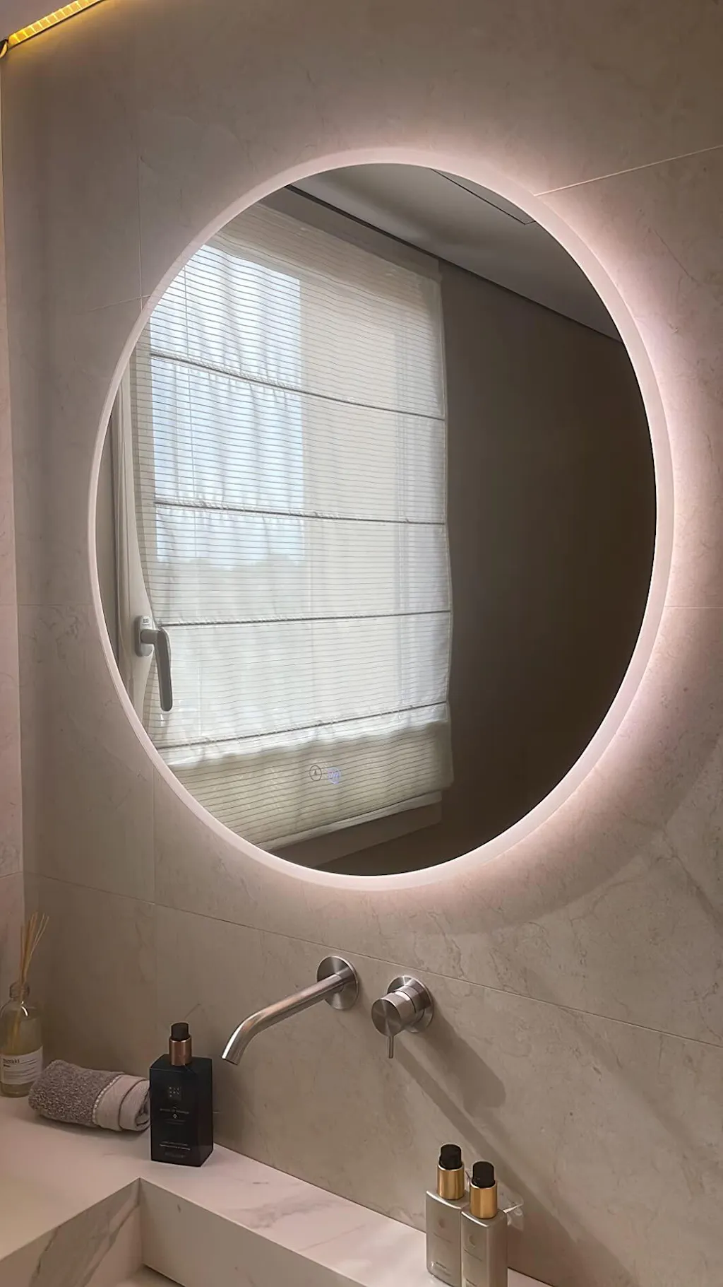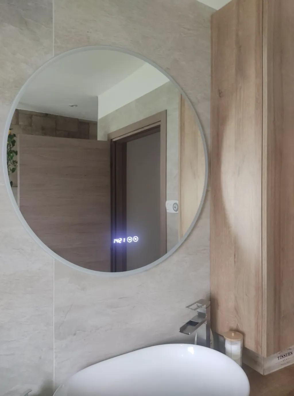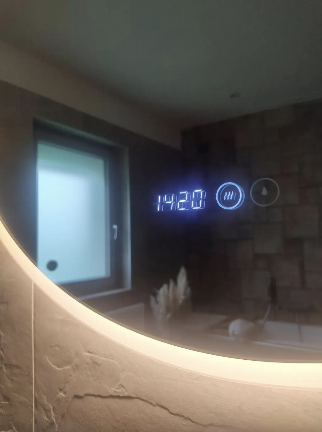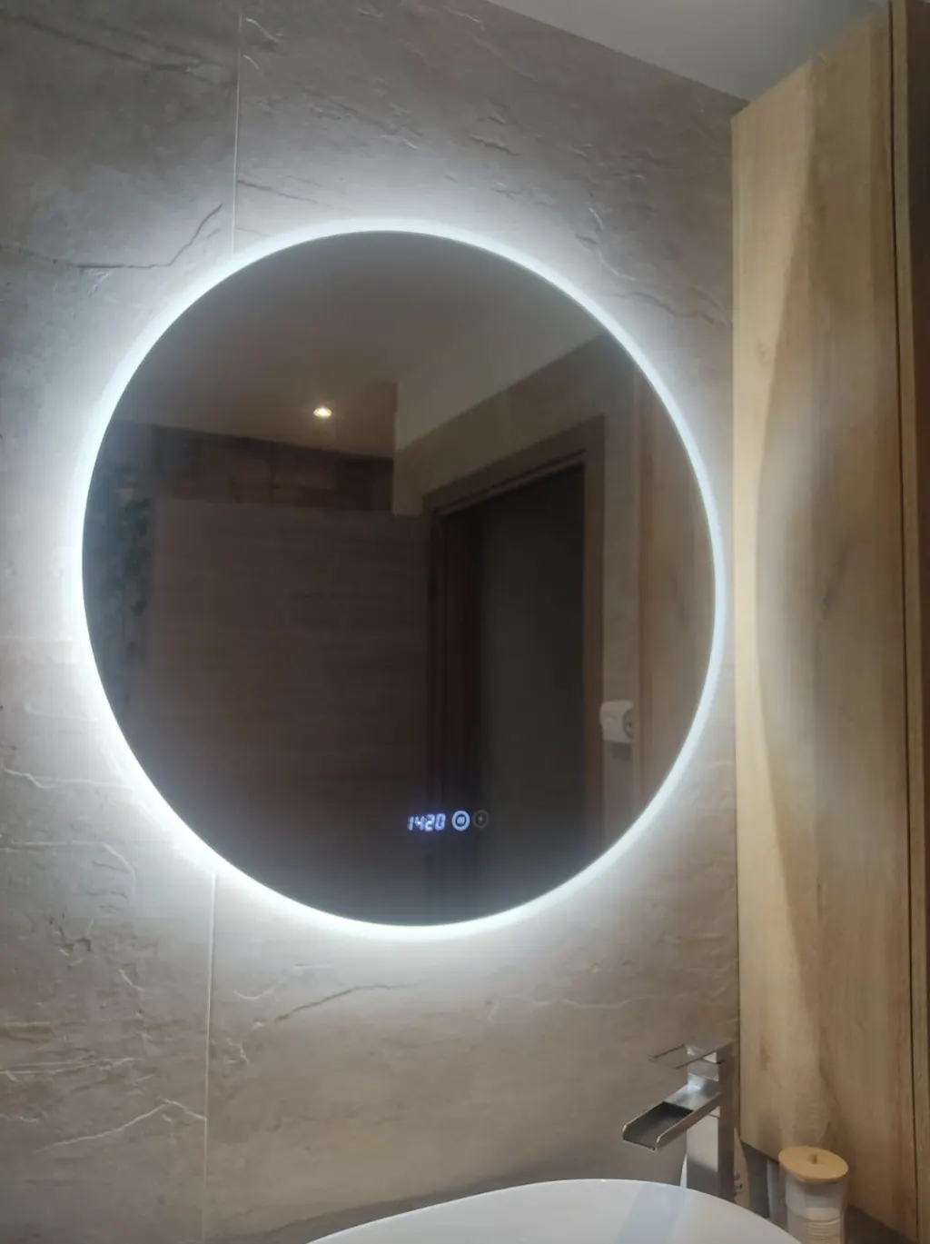 ANTIBESCHLAG und DIGITAL UHR, LED Rundspiegel mit Spiegelheizung