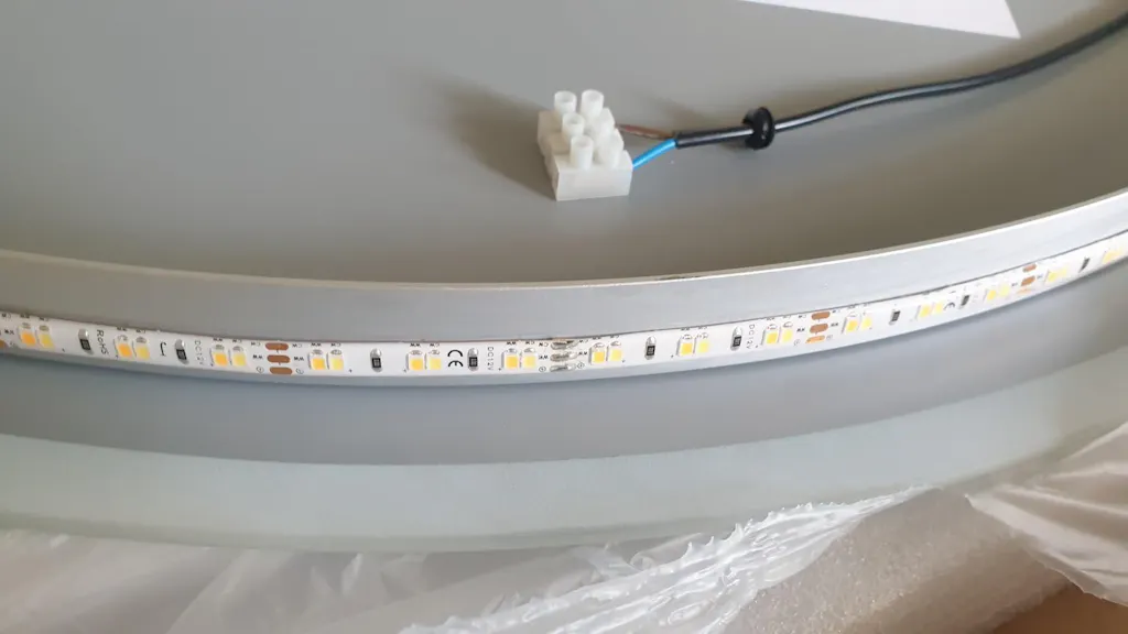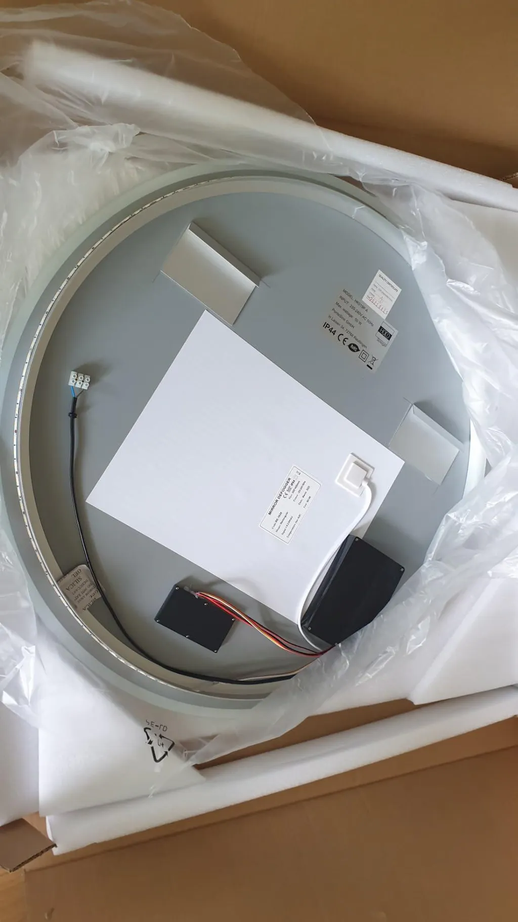 Der Anschluss an das Stromnetz erfolgt bequem (und im installierten Zustand nicht sichtbar) direkt an das vorhandene Wandkabel. So lässt sich dieser LED Lichtspiegel bequem mit dem Lichtschalter aus- und einschalten.