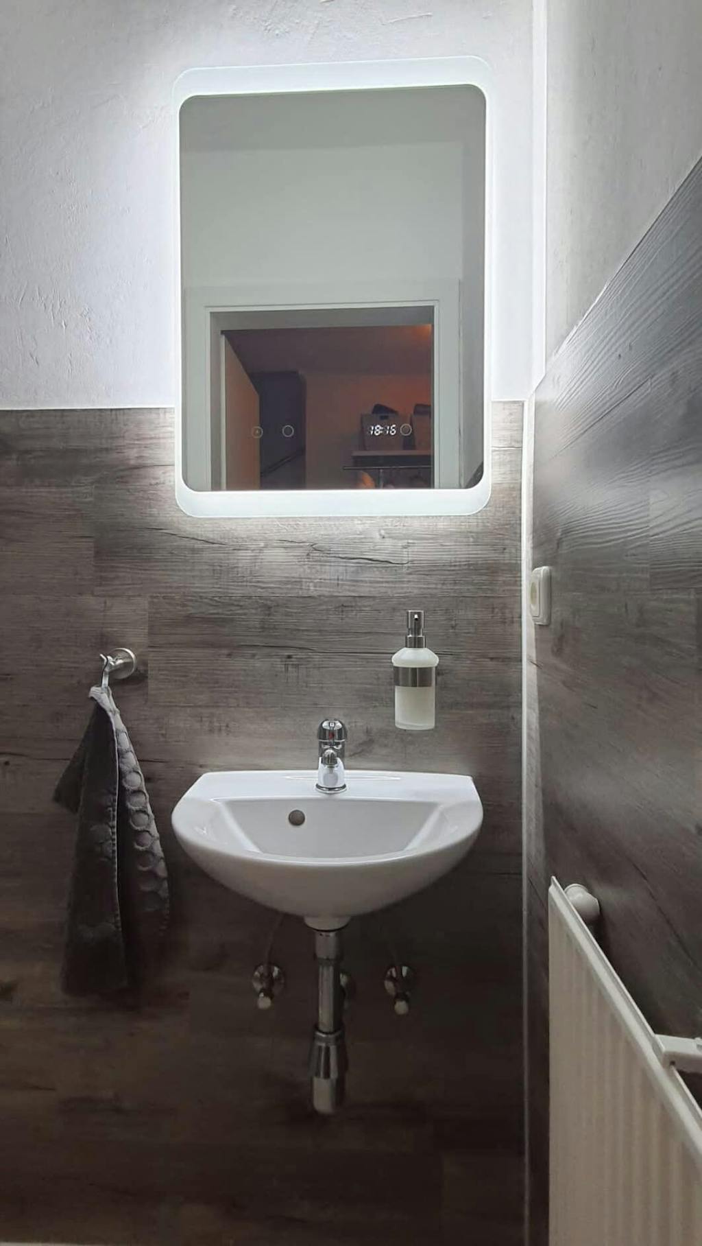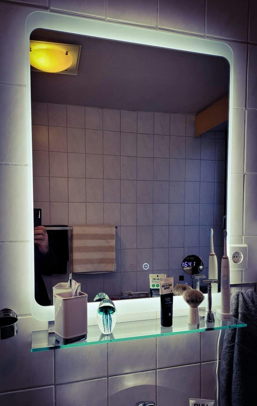 Aufgrund seiner Größe von 50 x 70 cm / 60 x 80 cm passt dieser Lichtspiegel sehr gut in kleine Badezimmer und Gäste WC oder wenn zwei Spiegel montiert werden perfekt zu Doppelwaschbecken.