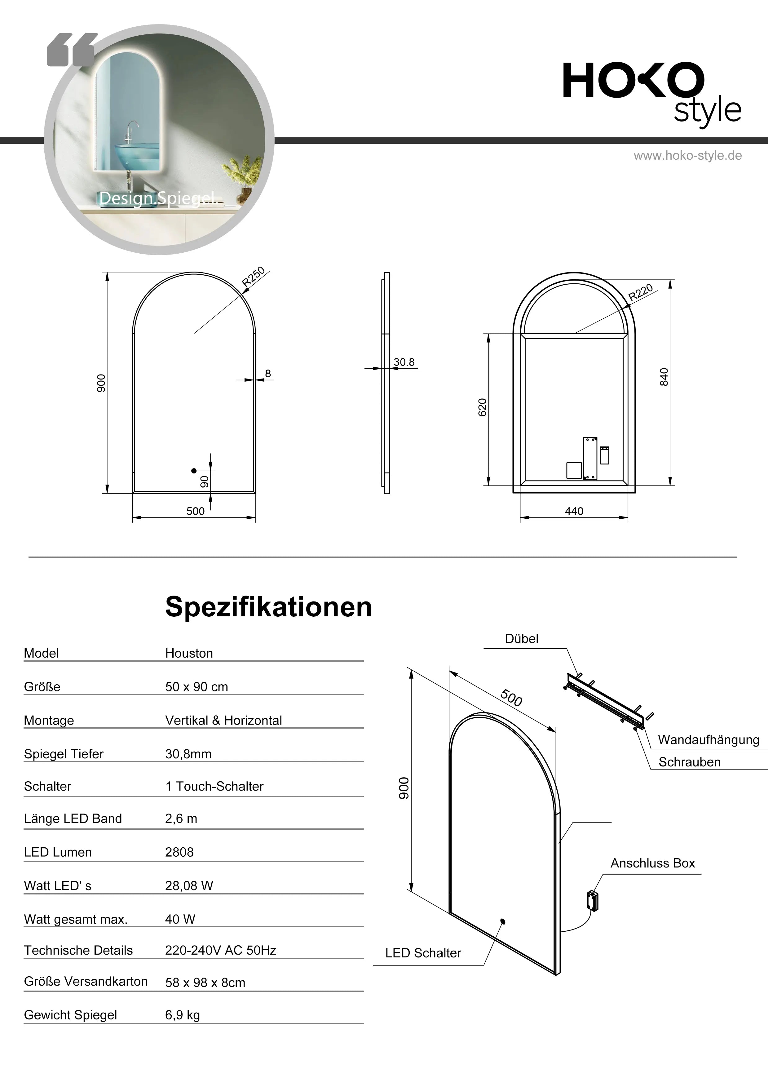 Premium Verpackung und Einfacha Montage. Inkl. Montageanleitung und Zubehör zur Montage an Massiv-Wänden. Feuchtraum geeignet für Badezimmer (IP44) Geringer Stromverbrauch, SGS geprüft für Ihre Sicherheit.