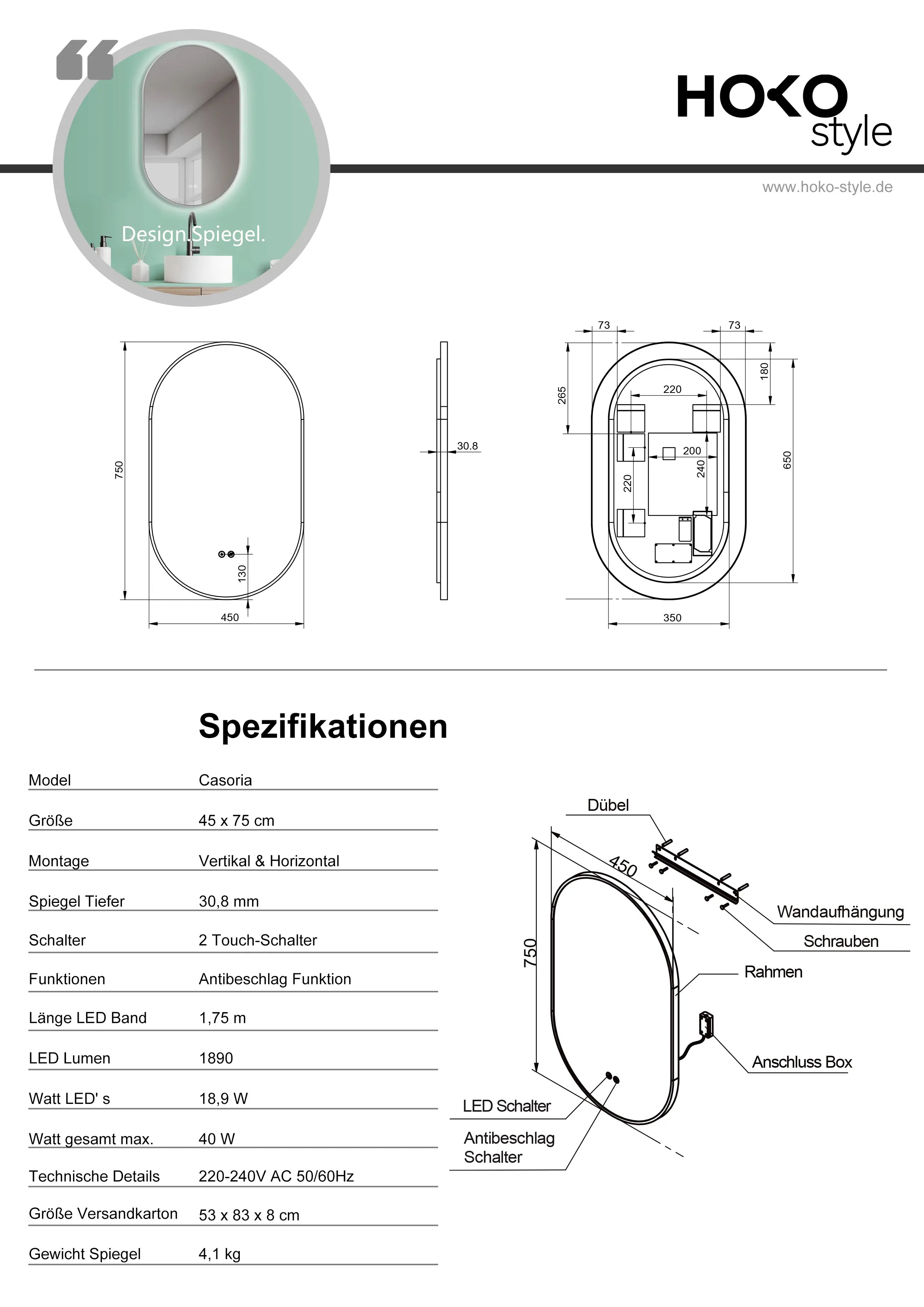 Die Montage der HOKO-Spiegel ist sehr einfach. Das benutzerfreundliche Aufhängesystem mit integrierter Wasserwaage erleichtert den Prozess erheblich. Auch der sichere Stromanschluss ist unkompliziert, sodass eine Person die Installation in ca. 15 Minuten durchführen kann.