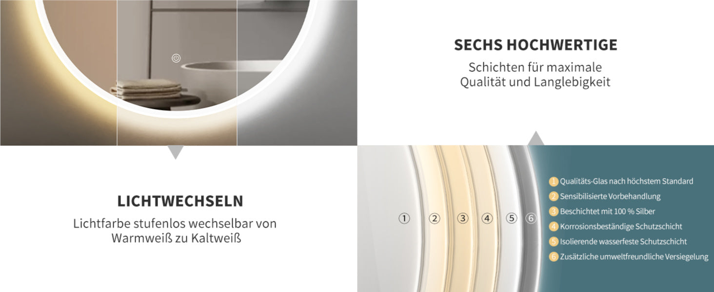 Der Spiegel der HOKO-Spiegel besteht aus hochwertigem Kupferspiegel, ist hell, hochauflösend und sehr leicht zu reinigen.