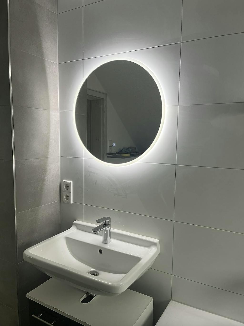 Dieser runde LED Spiegel ist stilsicherer Spiegel und gleichzeitig Design Element in jedem modernen Badezimmer! Der Spiegel Cottbus ist rundum mit einem kreisrunden Lichtausschnitt versehen und setzt das Spiegelbild in perfektes Licht.