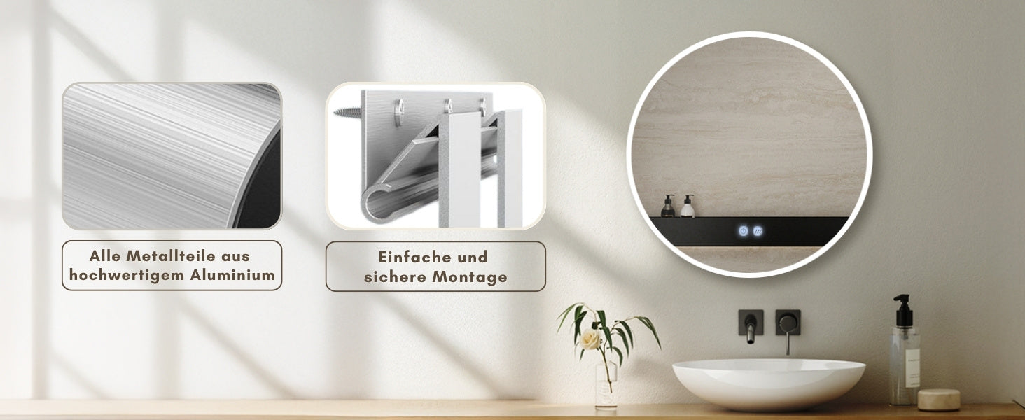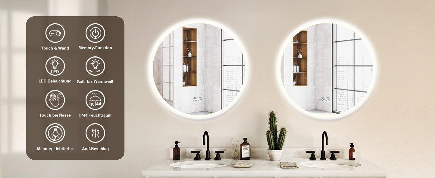 Runder LED Badspiegel mit Antibeschlag, Spiegelheizung & Lichtwechsel