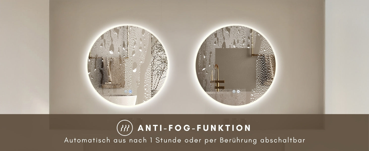 Dieser LED beleuchtete Bad Spiegel verfügt über eine Antibeschlag-Funktion auf der Spiegelfläche. Diese verhindert das Beschlagen bei hoher Luftfeuchtigkeit! Diese kann manuell über den Touch-Schalter deaktiviert werden, eine automatische Abschaltung der Spiegelheizung erfolgt nach 45 Minuten.