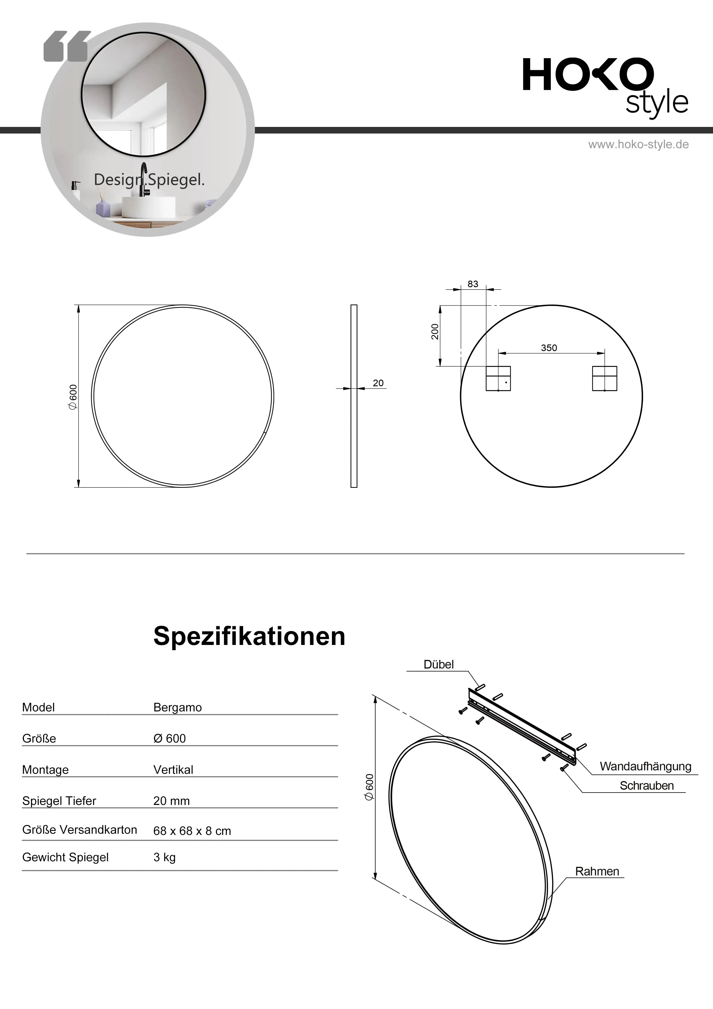 Dekor Wandspiegel Rund mit Schwarz RAHMEN, ohne Beleuchtung